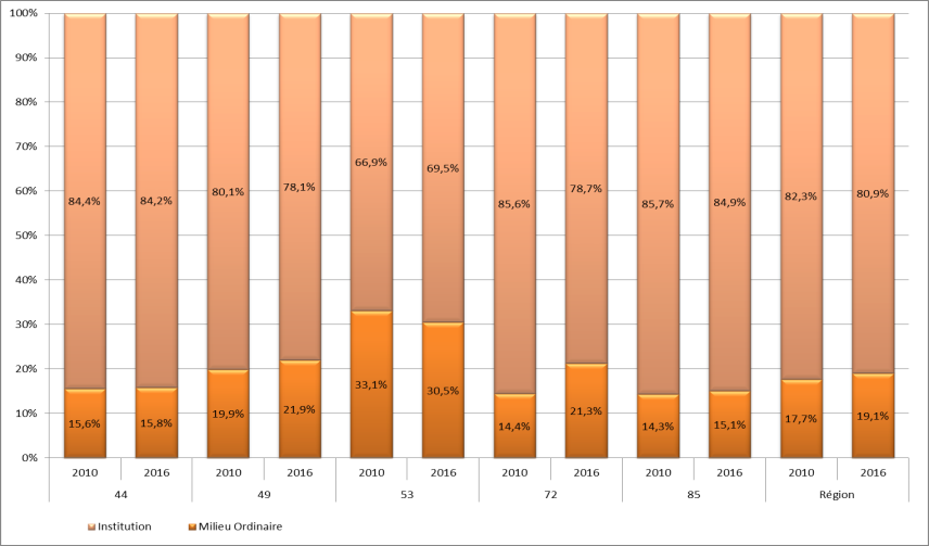 Au 1er janvier 2016, le taux d’équipement en établissement d’hébergement pour adultes en situation de handicap en région Pays de la Loire est au moins égal (FAM) ou supérieur (MAS, foyers de vie) aux taux d’équipement nationaux pour chacune de ces catégories d’établissements. - D’un point de vue qualitatif, les organismes gestionnaires se sont inscrits plus largement, notamment sous l’effet du développement de la contractualisation, dans des logiques d’efficience et de qualité.