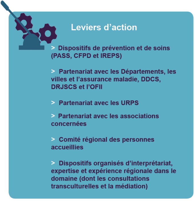 Organiser l’accès à l’interprétariat médical gradué sur l’ensemble des départements : depuis la mise à disposition d’outils traduits, en passant par ’interprétariat à distance ou par l’interprétariat de visu en intégrant les enjeux de professionnalisation des interprètes et les acteurs de la région.