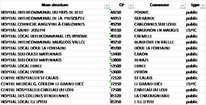 Liste des hôpitaux de proximité :