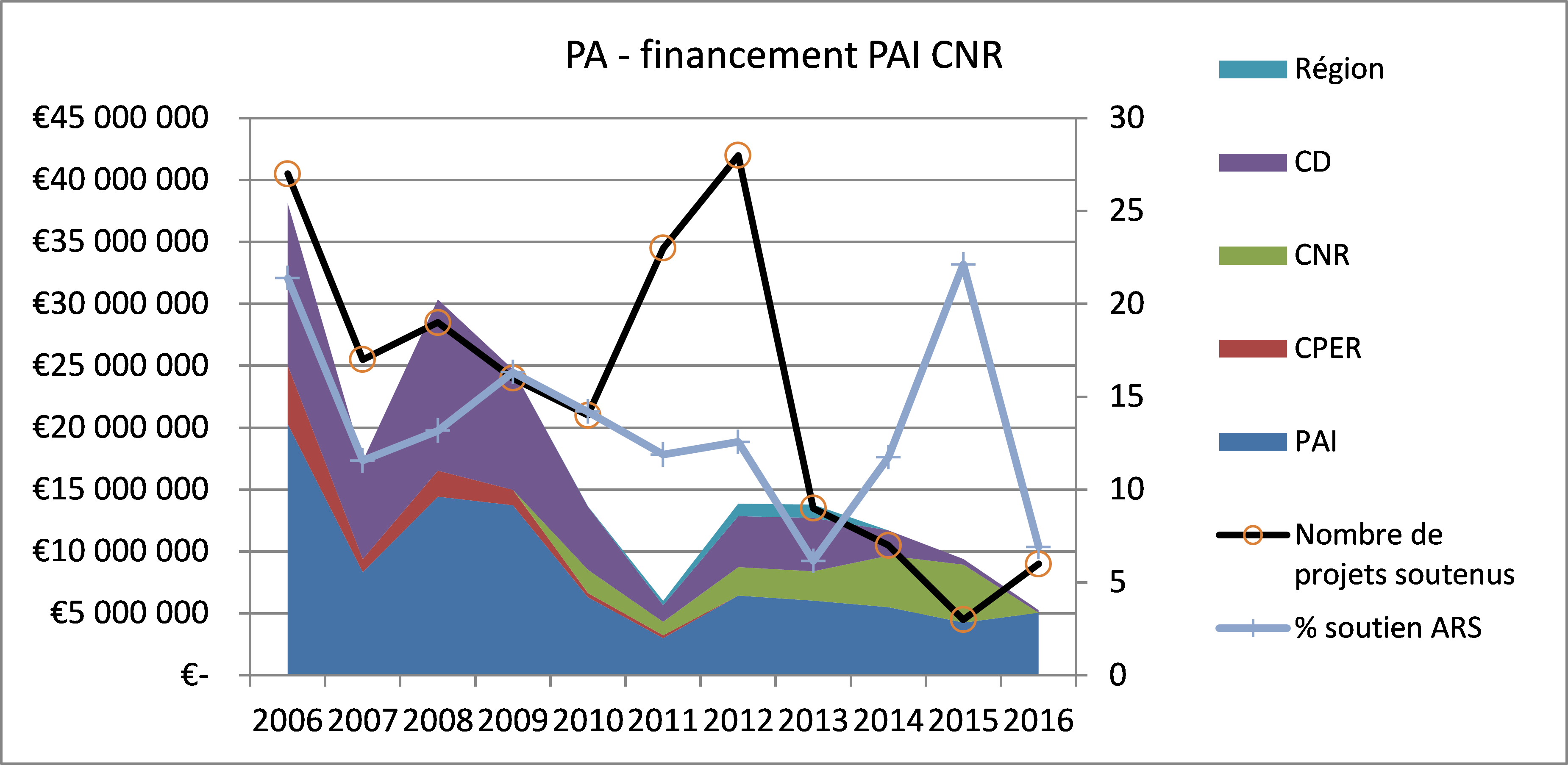 Parallèlement la capacité financière d’accompagnement des projets sur le territoire a fortement évolué ces dernières années avec une réduction assez marquée des aides à l’investissement. Cette diminution des ressources financières s’est traduite par une réduction du nombre de dossiers soutenus tout en maintenant un taux de soutien permettant un véritable effet levier sur les projets.