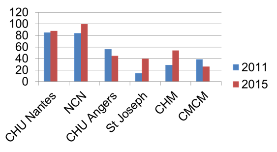 Evolution angioplasties 2011 : 5 654 2015 : 7 842 |