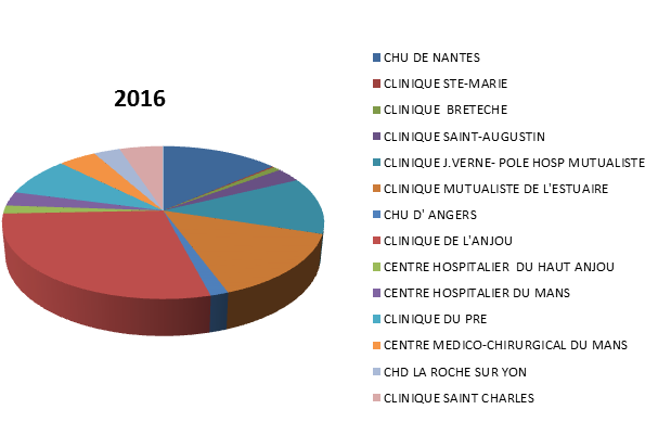 A noter 2 nouveaux établissements qui démarrent cette activité en 2016. 4 établissements réalisent 74 % de l’activité