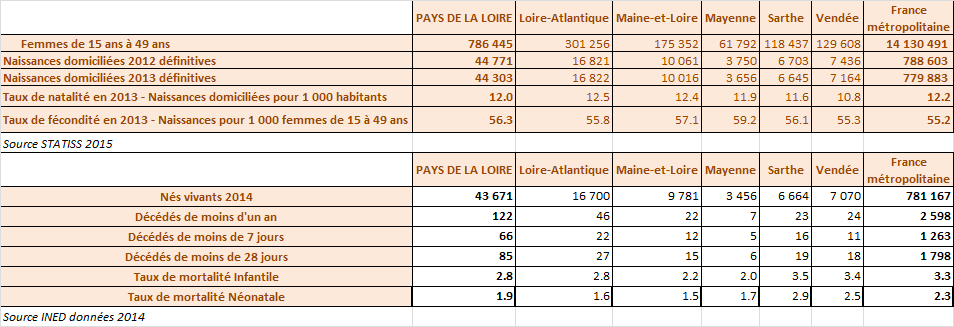 Pour autant, la Sarthe et la Vendée ont un taux supérieur à celui de la France (respectivement 2,9 et 2,5 pour 1 000 naissances vivantes versus 2,3).