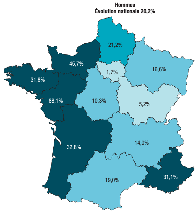 Toutefois, malgré des disparités régionale importantes, on observe une progression importante du taux de rééducation cardiaque depuis 2010, particulièrement chez les femmes, avec une augmentation des prises en charge en ambulatoire au détriment de l’hospitalisation complète.