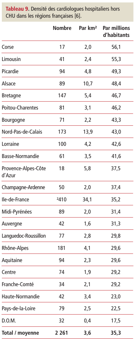 Figure 7 : Analyse régionale des effectifs de cardiologues