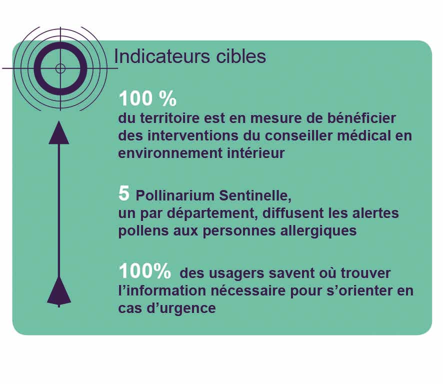 - Mettre à la disposition des professionnels de l’éducation thérapeutique et des usagers, des outils d’aide à la gestion des allergies et des pathologies respiratoires d’origine environnementale (en lien avec l’axe 5 du PRSE3)